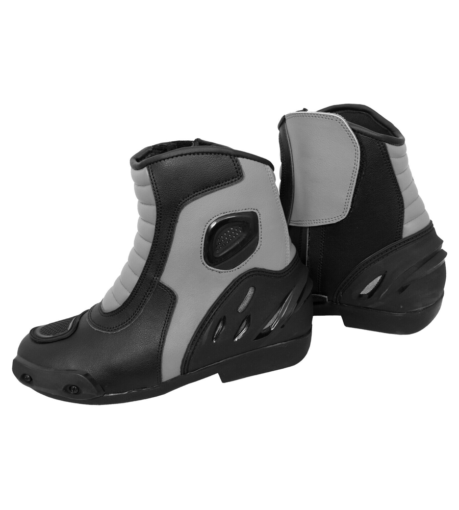 Hit the road with confidence in our Motorcycle Sports Black and Grey Leather Adventure Ankle Boots. Combining rugged style and reliable protection, these boots are crafted from high-quality leather for durability. The black and grey color scheme not only looks sharp but also enhances visibility. Featuring reinforced toe and heel areas, they provide essential safety without compromising comfort. The ankle design allows for flexibility and easy movement, while the breathable lining ensures your feet stay cool during long rides. Perfect for both urban and off-road adventures, these boots are your go-to choice for any riding experience.